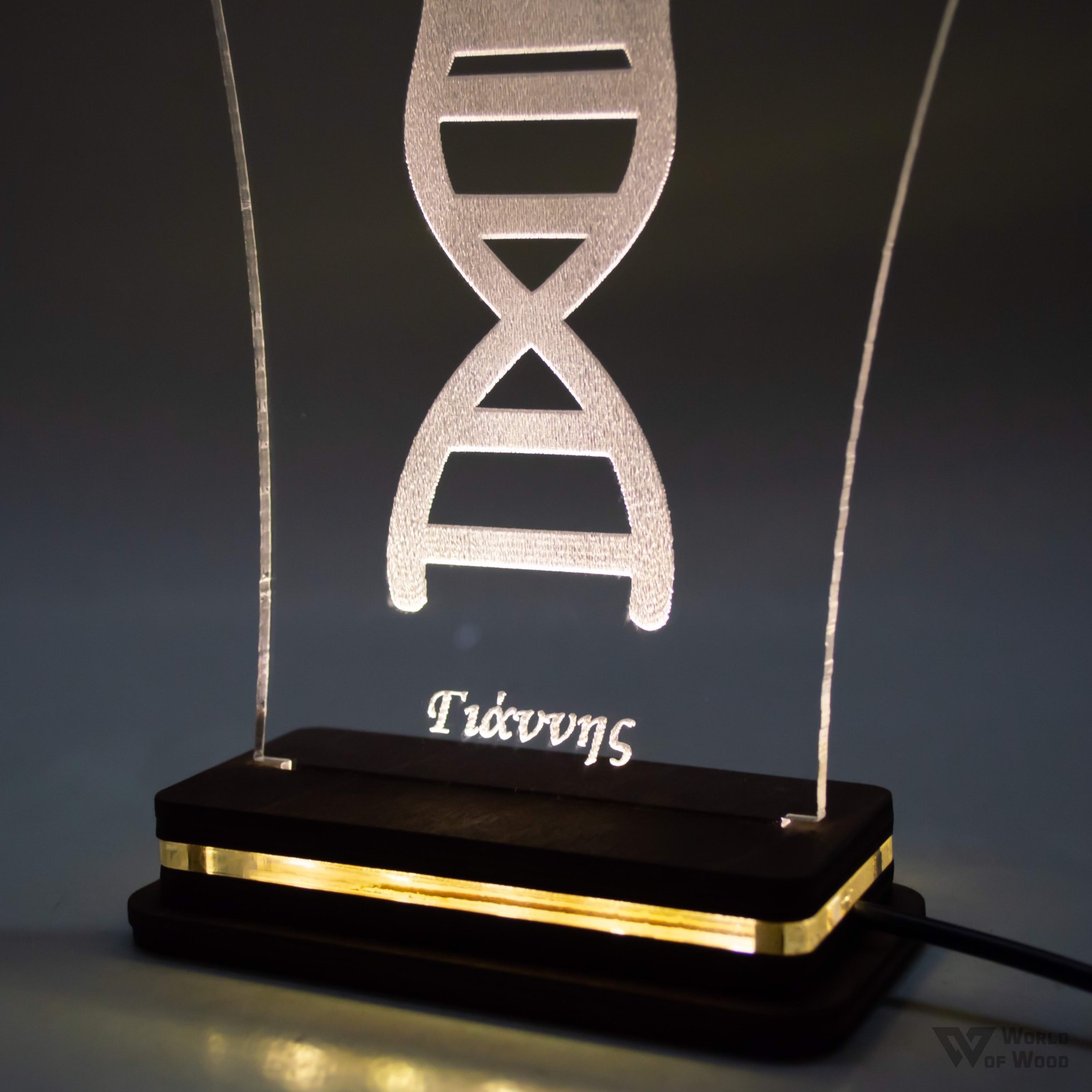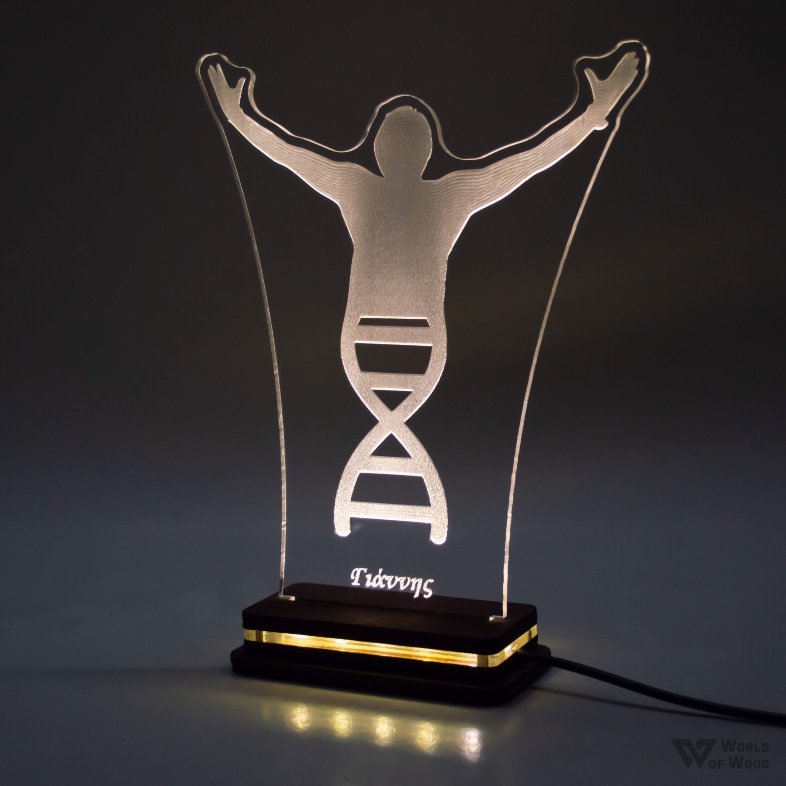 Χειροποίητο Φωτιστικό LED "Άνθρωπος DNA" με Ξύλινη βάση και Plexiglass