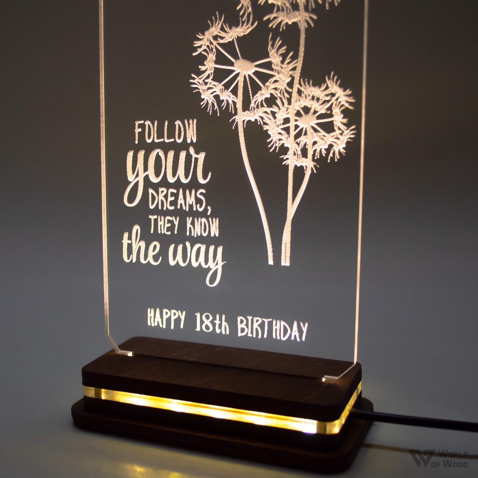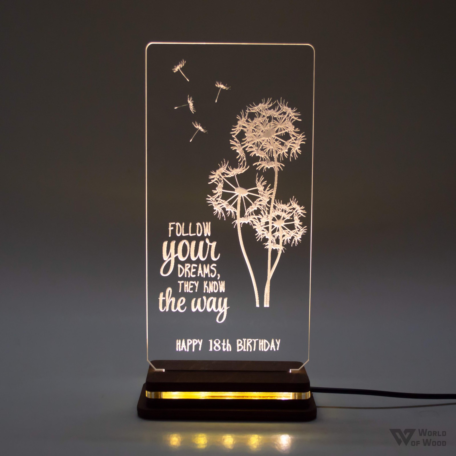 Χειροποίητο Φωτιστικό LED "Dragonfly - Follow Your Dreams" με Ξύλινη βάση και Plexiglass