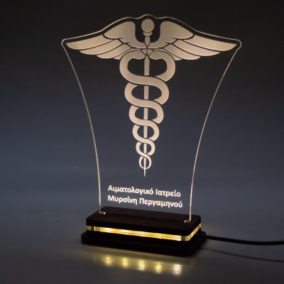 Χειροποίητο Φωτιστικό LED "Γιατρός" με Ξύλινη βάση και Plexiglass