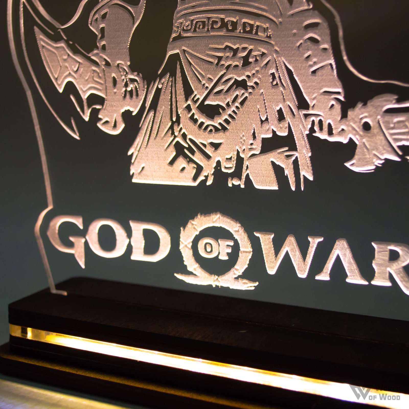 Χειροποίητο Φωτιστικό LED Φωτιστικό LED "God of War - Kratos" με Ξύλινη βάση και Plexiglass