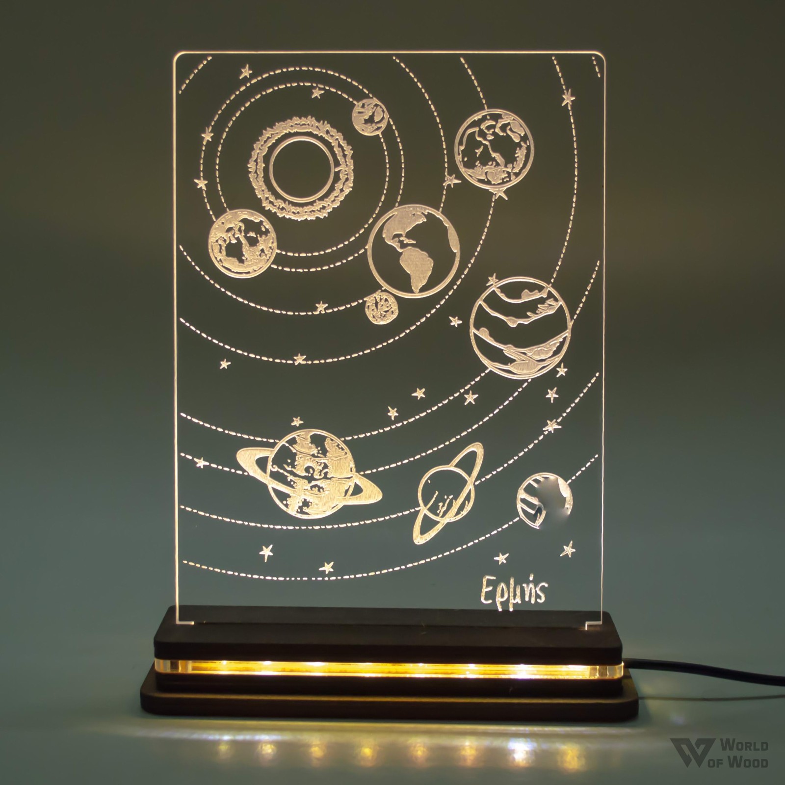 Χειροποίητο Φωτιστικό LED "Ηλιακό Σύστημα" με Ξύλινη βάση και Plexiglass