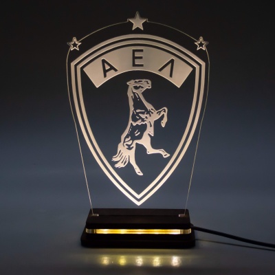 Χειροποίητο Φωτιστικό LED Φωτιστικό LED "Κύπελλο Μπάσκετ" με Ξύλινη βάση και Plexiglass
