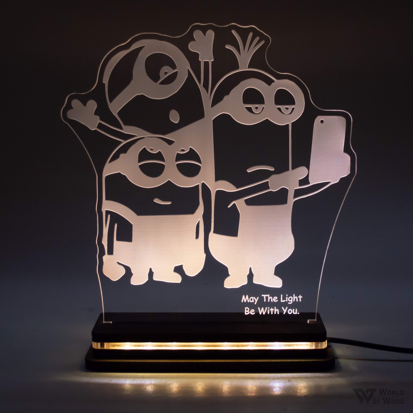 Χειροποίητο Φωτιστικό LED Φωτιστικό LED "Minions" με Ξύλινη βάση και Plexiglass