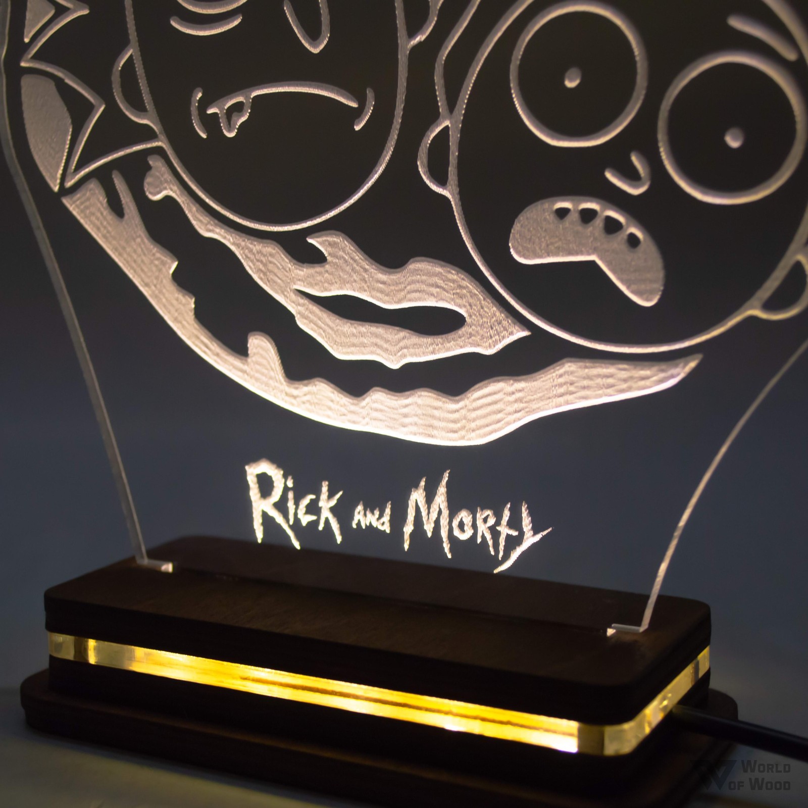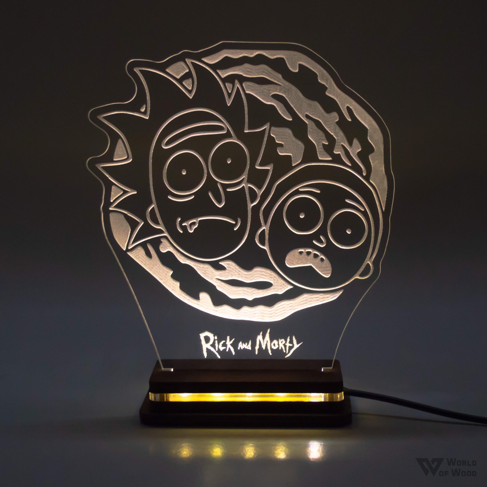 Χειροποίητο Φωτιστικό LED Φωτιστικό LED "Rick and Morty - Portal" με Ξύλινη βάση και Plexiglass