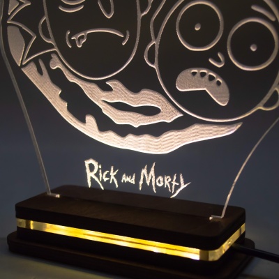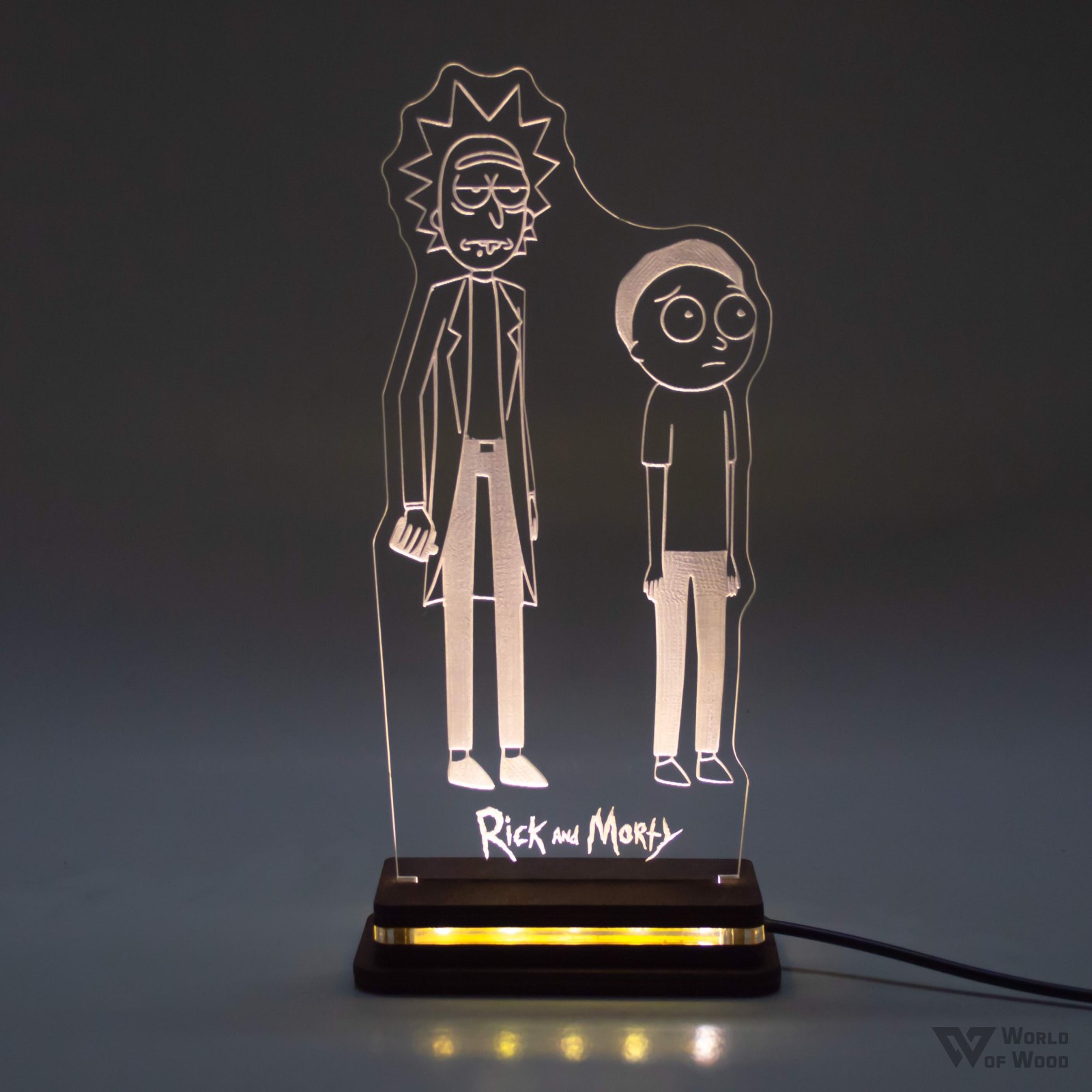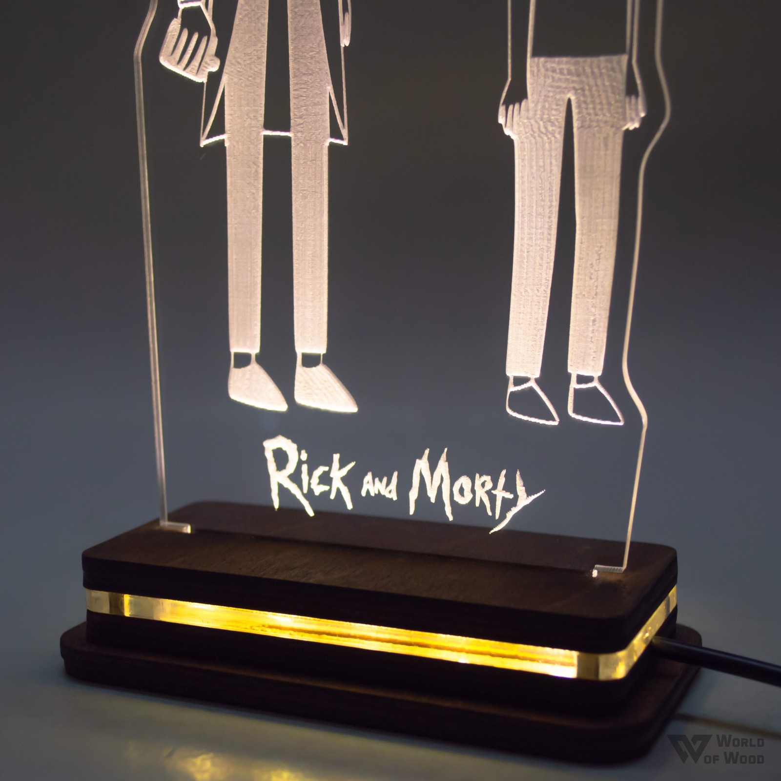 Χειροποίητο Φωτιστικό LED Φωτιστικό LED "Rick and Morty" με Ξύλινη βάση και Plexiglass