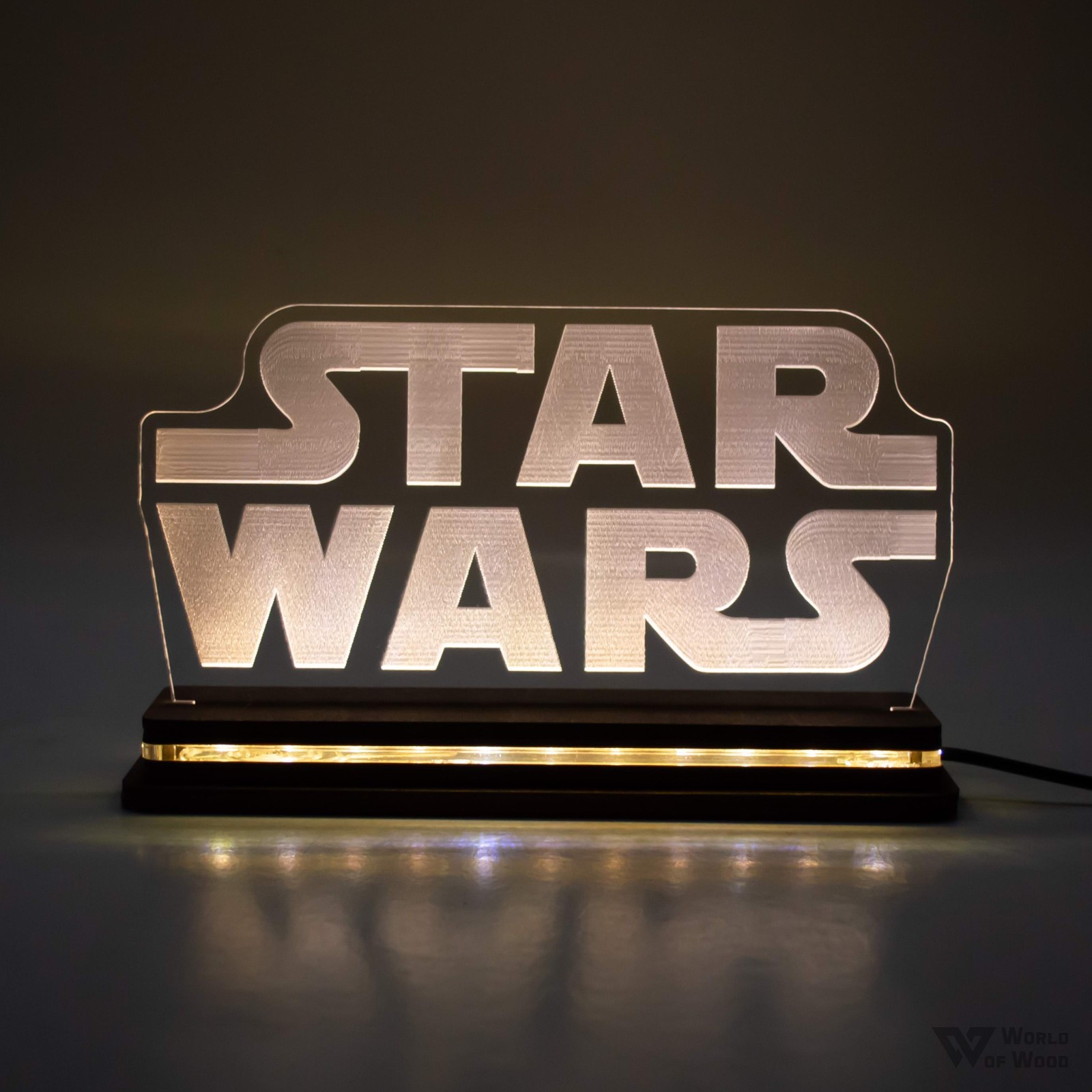 Χειροποίητο Φωτιστικό LED Φωτιστικό LED "Star Wars" με Ξύλινη βάση και Plexiglass