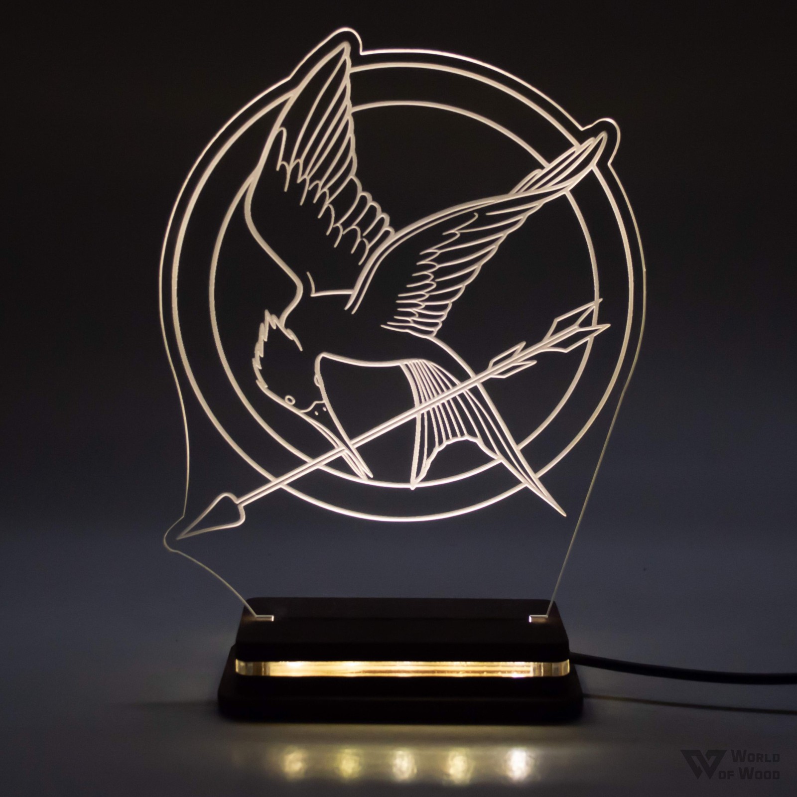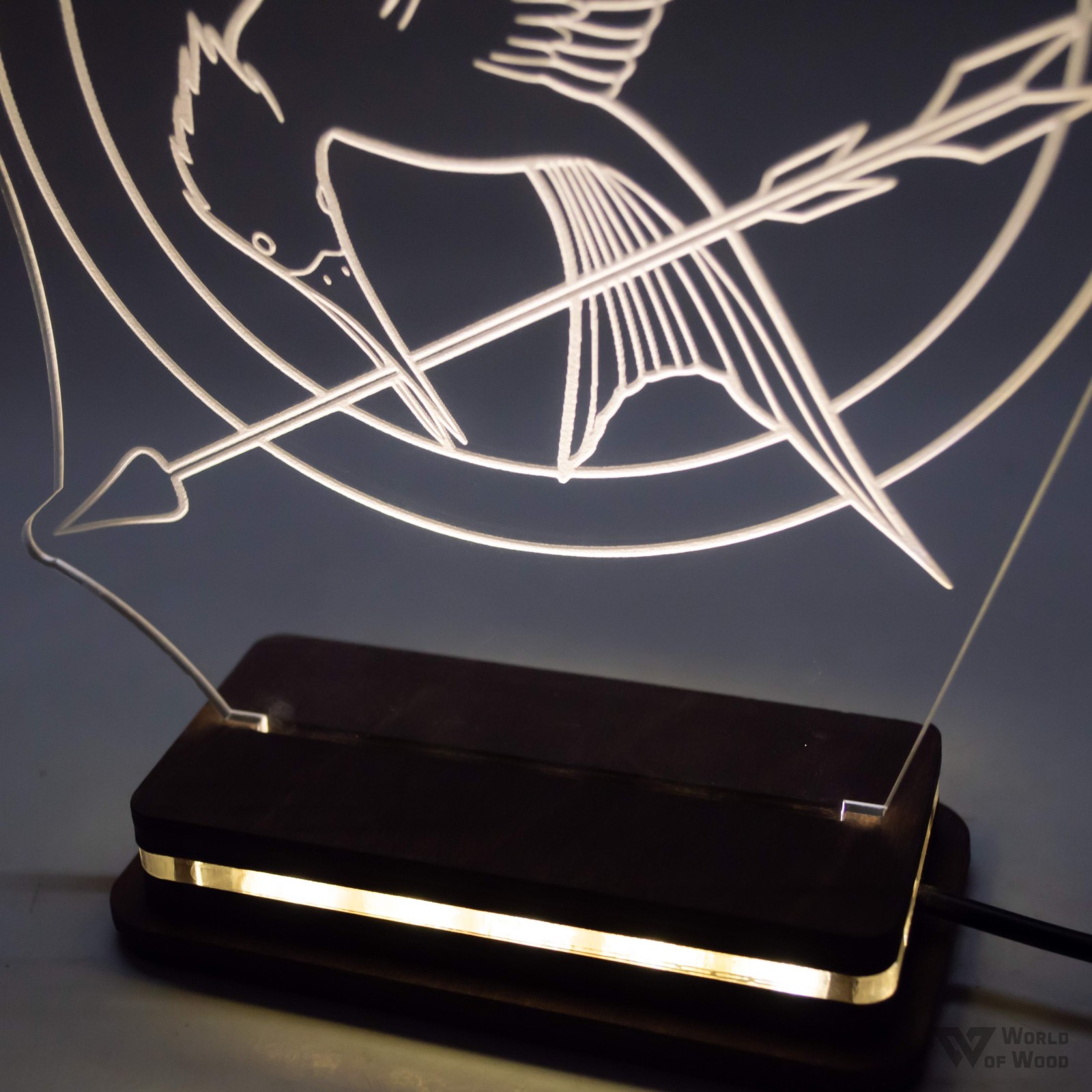 Χειροποίητο Φωτιστικό LED Φωτιστικό LED "The Hunger Games" με Ξύλινη βάση και Plexiglass
