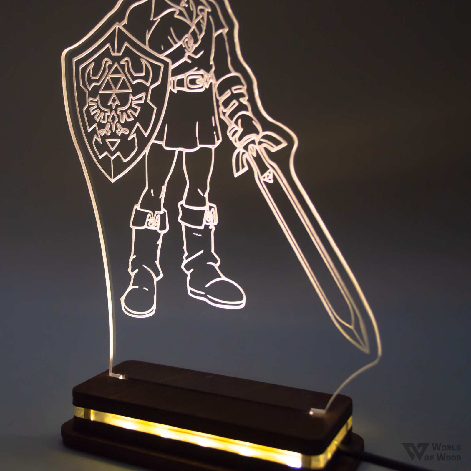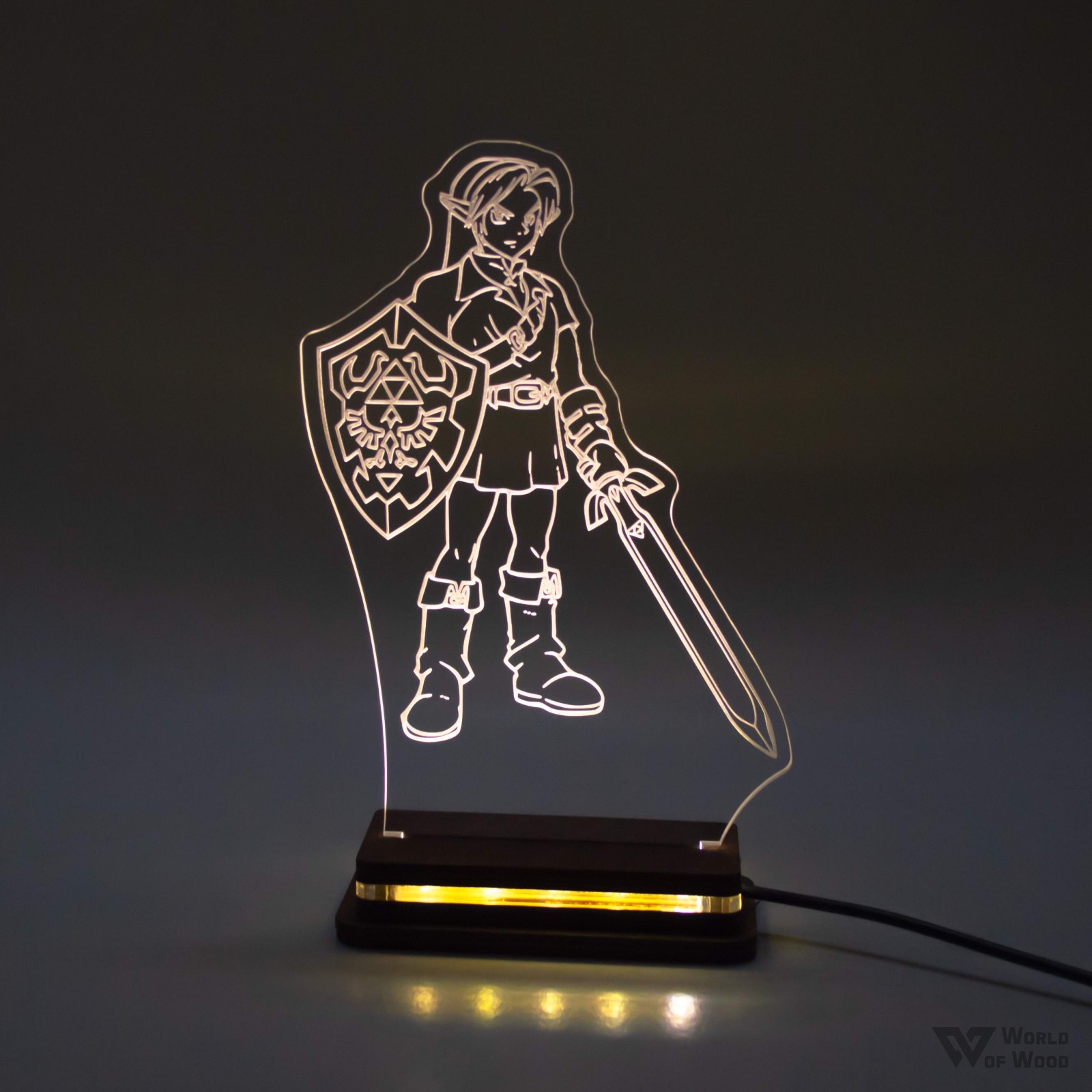 Χειροποίητο Φωτιστικό LED Φωτιστικό LED "The Legend of Zelda - Link" με Ξύλινη βάση και Plexiglass