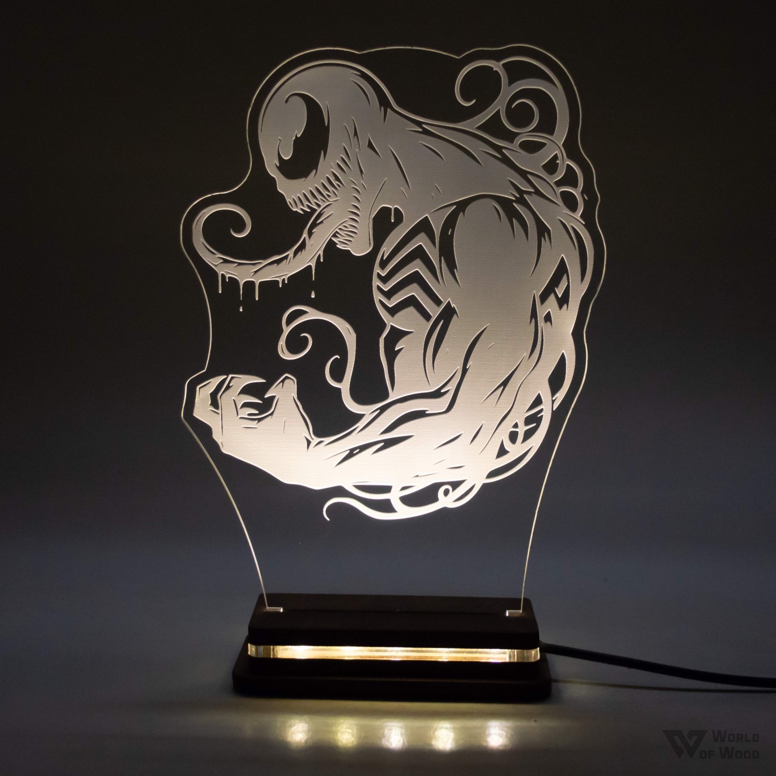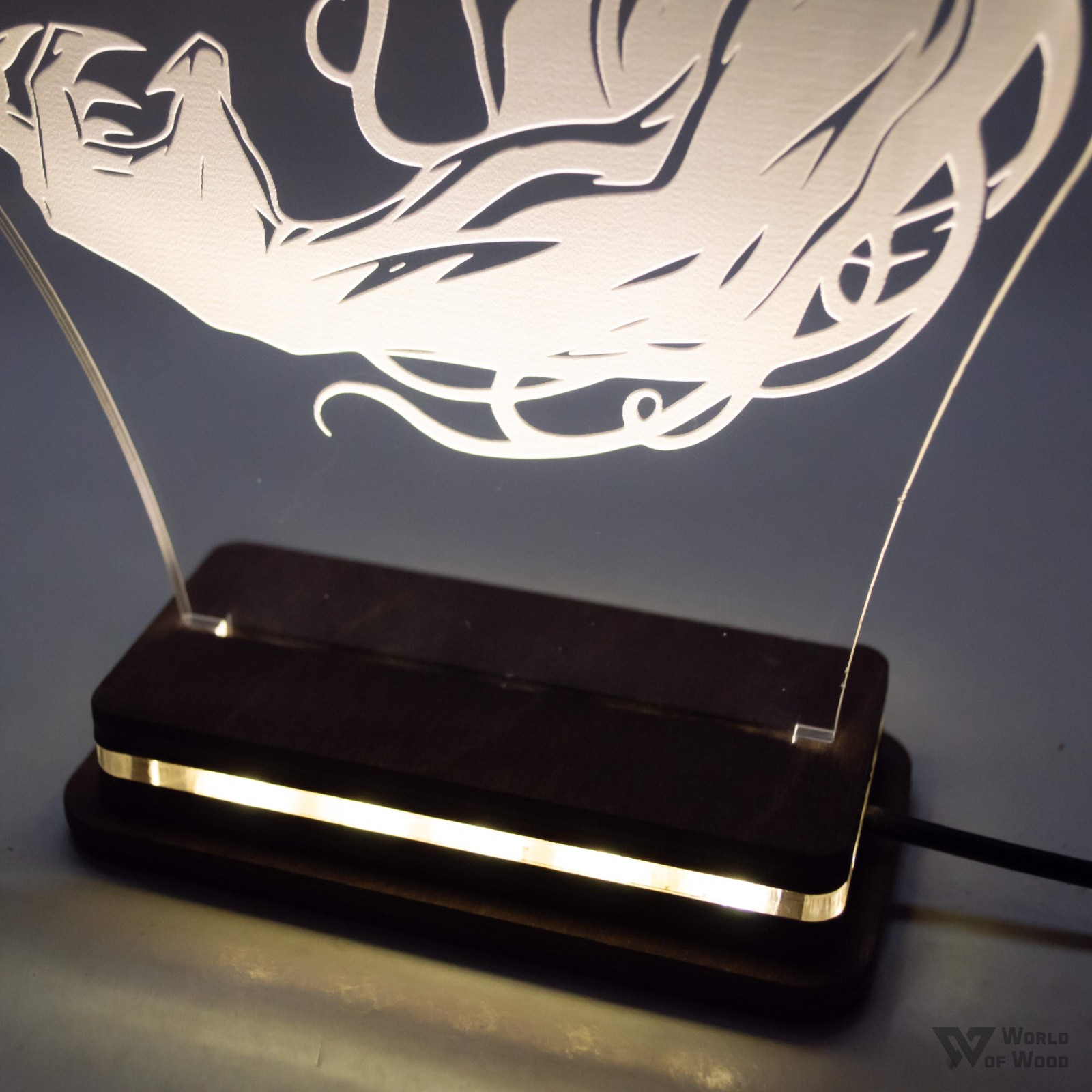 Χειροποίητο Φωτιστικό LED Φωτιστικό LED "Venom" με Ξύλινη βάση και Plexiglass