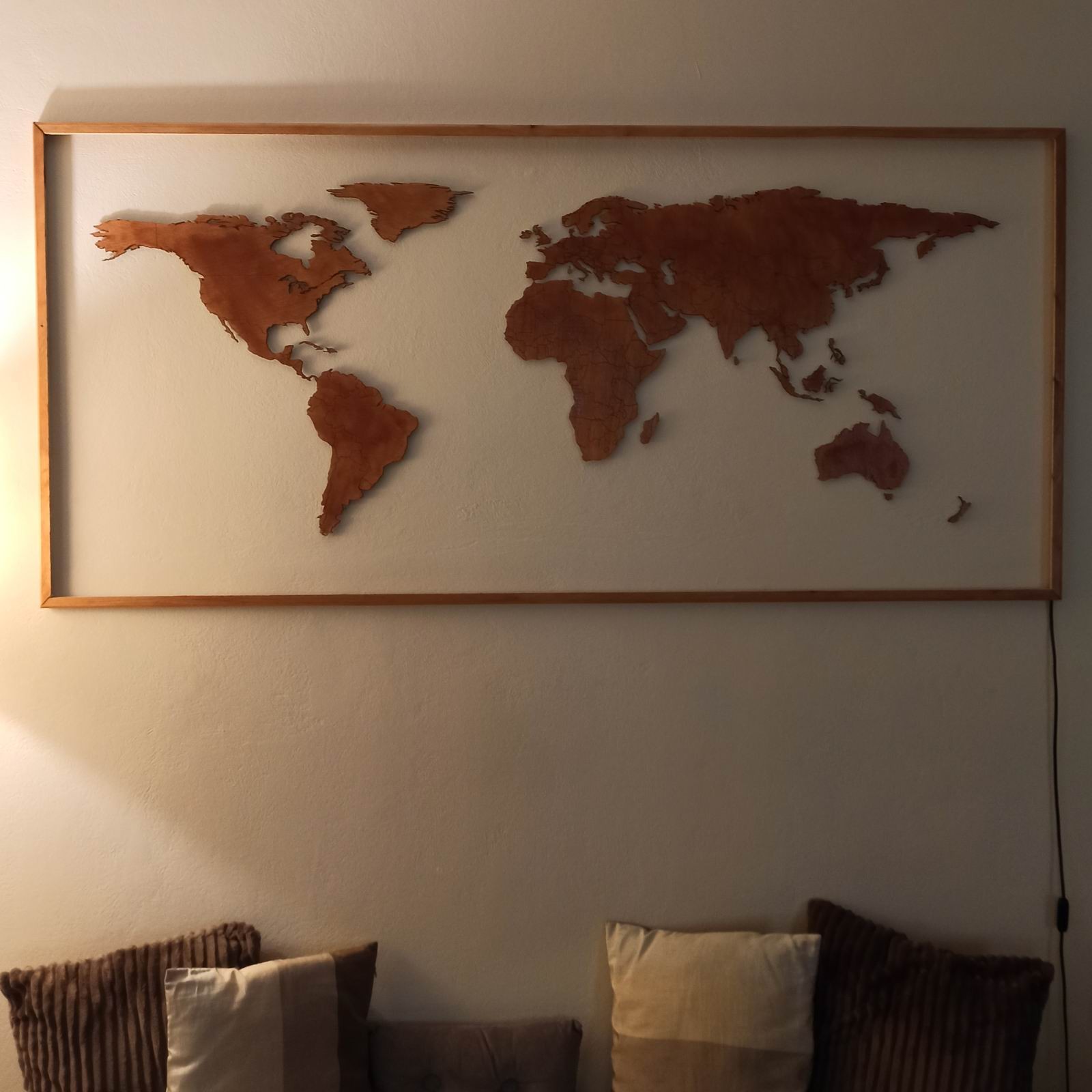 Ξύλινος πίνακας και κορνίζα με τον παγκόσμιο χάρτη και κρυφό φωτισμό LED.